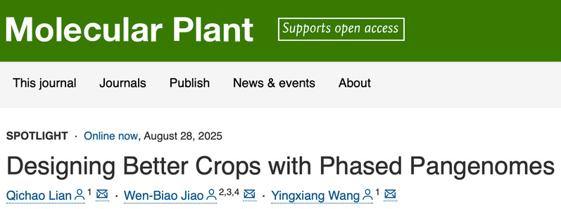 近日,华南农业大学王应祥教授、连启超教授与华中农业大学焦文标教授合作,在国际著名期刊《Molecular Plant》发表题为 “Designing Better Crops with Phased Pangenomes” 的 Spotlight 文章。该文系统阐述了单倍型泛基因组(phased pangenome)在解析复杂作物遗传多样性方面的独特优势,并展望了其在分子设计育种中的应用前景。