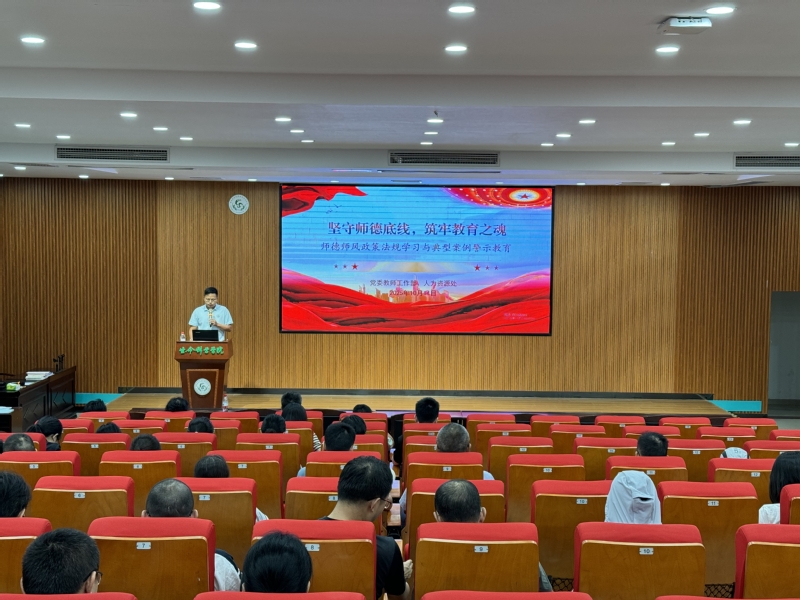 吴迪老师以“坚守师德底线,筑牢教育之魂”为题作了师德师风专题宣讲,他带领全体教师学习教育部乐竞体育-中国一站式服务官网师德师风的相关政策法规文件,以及学校师德师风文件规定,并通过近年来部分高校出现的违反师德规范的典型案例,“以案释德、以案释纪、以案释法”,为全体教职工上了一场深刻的师德警示教育课。