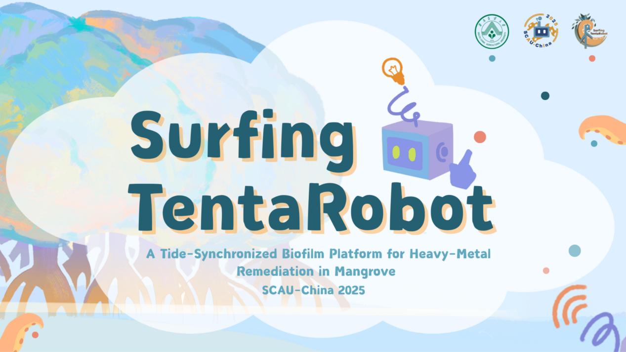 红树林是热带和亚热带海岸潮间带最具生产力的海洋生态系统之一,为丰富的生物多样性提供栖息地、保护海岸线免受侵蚀、通过碳封存缓解气候变化。然而,随着工农业发展,重金属污染已成为威胁红树林生态系统的严重挑战,过量的重金属不仅破坏土壤和水质,还通过食物链累积,对整个生态系统造成不可逆转的损害。因此,SCAU-China团队开发了一种创新的生物修复系统"Surfing TentaRobot",其基于两个正交的功能模块——重金属吸附模块和生物矿化固定模块,通过潮汐响应的渗透压开关实现功能模块的时序分离,最终将可逆的重金属吸附转化为不可逆的矿化封存,实现在潮汐动态环境中高效、持久去除重金属的目的。