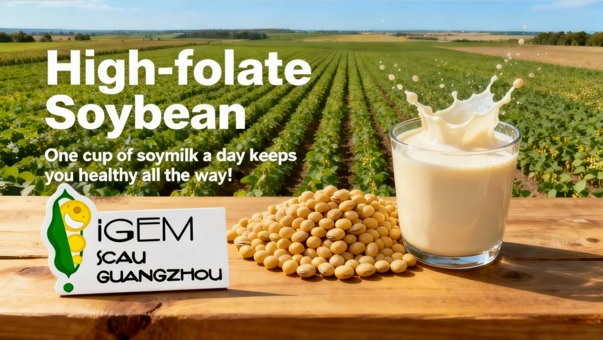相反,植物叶酸具有更高的活性和吸收效率,且生产过程符合可持续发展要求。因此,补充叶酸最有效的方法是通过强化植物来实现。本项目提出了一种整合合成生物学元素来培育高叶酸大豆的方案,通过在大豆种子中过量表达四种关键的叶酸合成酶来提高活性叶酸含量。我们的项目成功实现了预期目标,高效液相色谱-质谱检测显示,大豆种子中5-甲基四氢叶酸(活性最高的叶酸类型)的含量翻倍,这对叶酸缺乏人群,尤其是有遗传缺陷或低收入人群有益,并在科学研究和社会领域产生了广泛的影响。