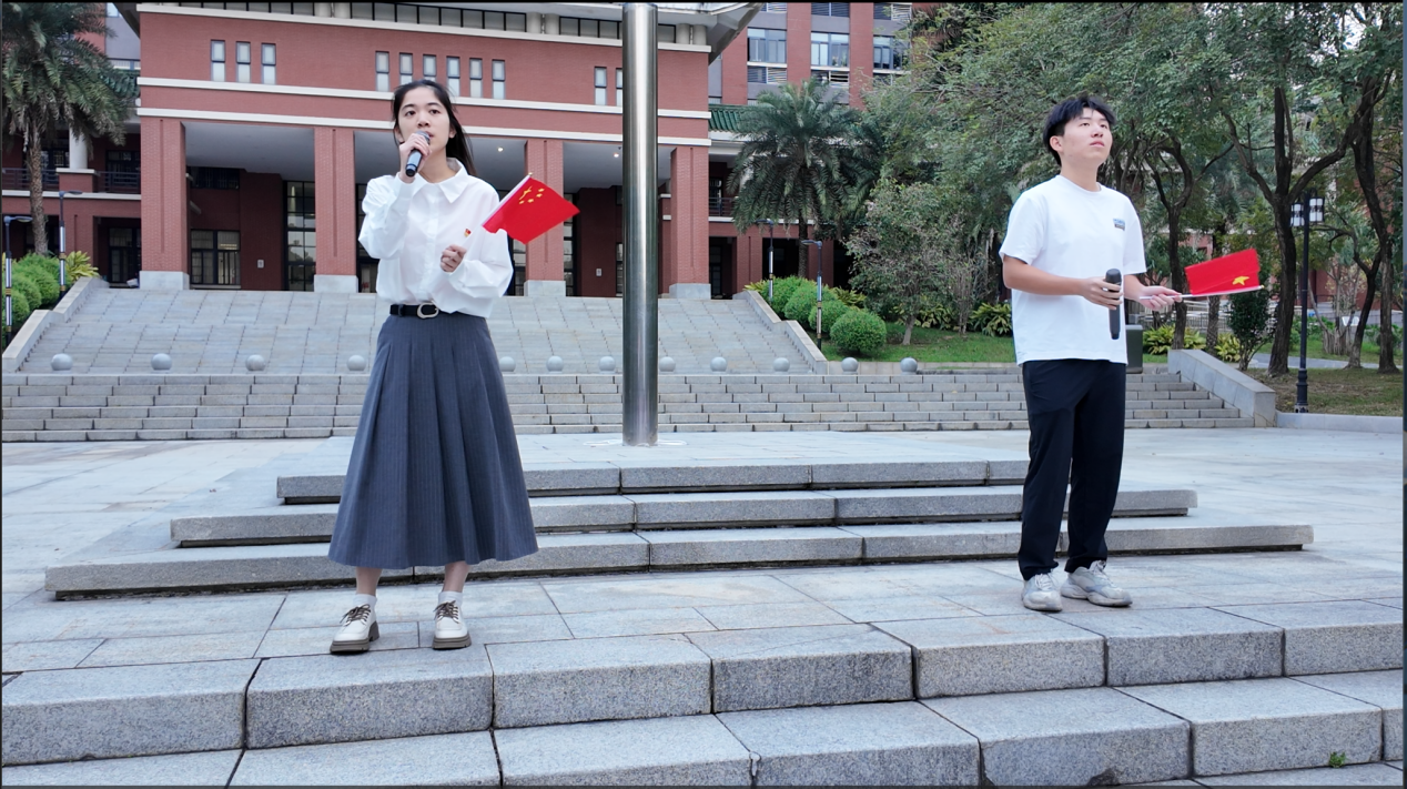 学生代表朗诵爱国诗歌《红色家书》,用真挚的语言传递出革命先辈的家国情怀与坚定信仰。“我爱你中国 ,亲爱的母亲,我为你流泪,我为你自豪”,全体同学挥舞手中的小红旗,齐声合唱《我爱你中国》,激昂的歌声汇聚成对祖国最深沉的告白,将现场气氛推向高潮。